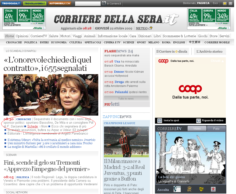 non capiro' mai perche' un quotidiano come il CdS senta il bisogno di disinformare in questa maniera. A un lettore disattento e comunque al centro del problema sembrano esservi Bassolino, de Mita e un anonimo "Consigliere PdL". In realta' si scopre leggendo che l'elenco dei raccomandati annovera: